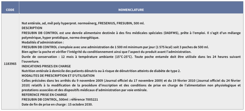 Denrées alimentaires destinées à des fins médicales spéciales pour nutrition entérale FRESUBIN DB CONTROL de la société FRESENIUS KABI France