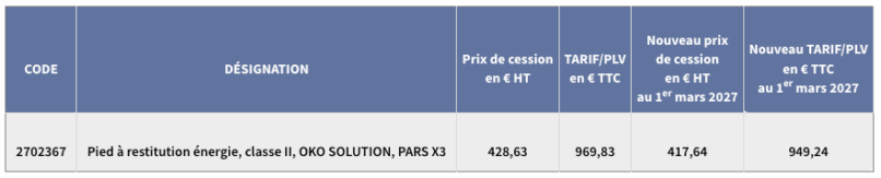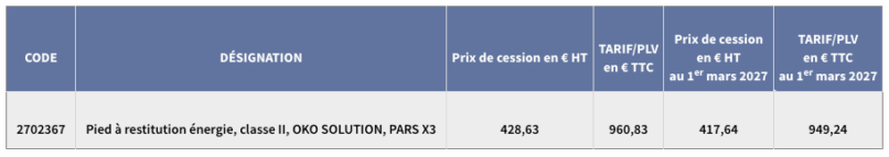 Suite à la publication de l’arrêté du 22 octobre 2025 portant sur l’inscription du pied à restitution d’énergie de classe II PARS X3 de la société OKO SOLUTION paru au JO du 24 octobre 2025, l’avis tarifaire ci-dessous vous avait été communiqué :