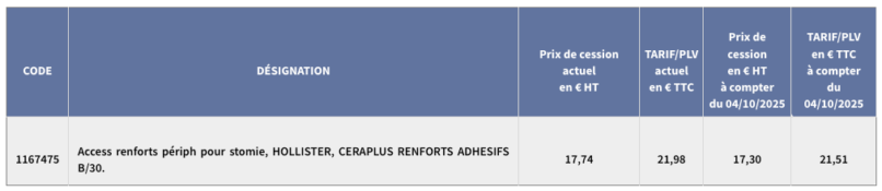 Avis relatif à la tarification des renforts périphériques pour stomie CERAPLUS RENFORTS ADHESIFS visés à l’article L. 165-1 du code de la sécurité sociale paru au JO du 16 septembre 2025.